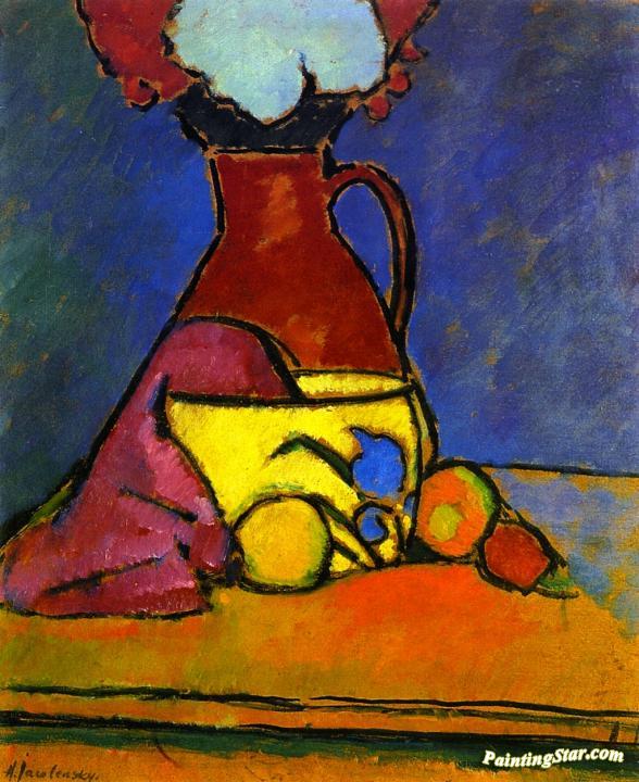 Brown Jug with Fruit, Art Painting by Alexej Jawlensky