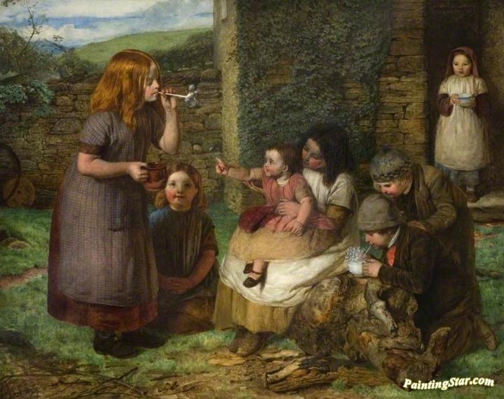 Bubbles, Cottage Scene With Children, Art Painting by John Dawson Watson