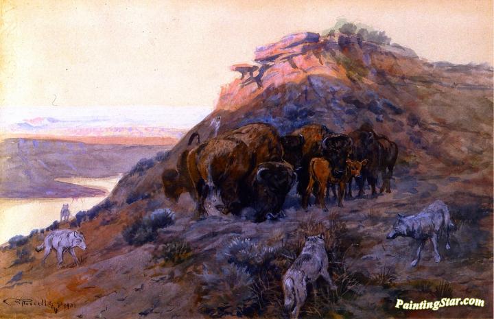 Buffalo Herd at Bay, Art Painting by Charles Marion Russell