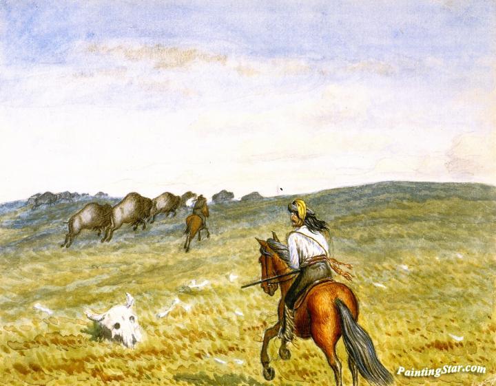 Buffalo on the Prarie, Art Painting by William George Richardson Hind