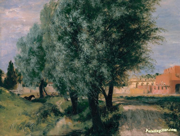 Building Site With Willows, Art Painting by Adolph von Menzel
