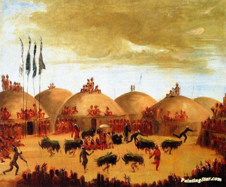 Bull Dance, Mandan O-kee-pa Ceremony, Art Painting by George Catlin