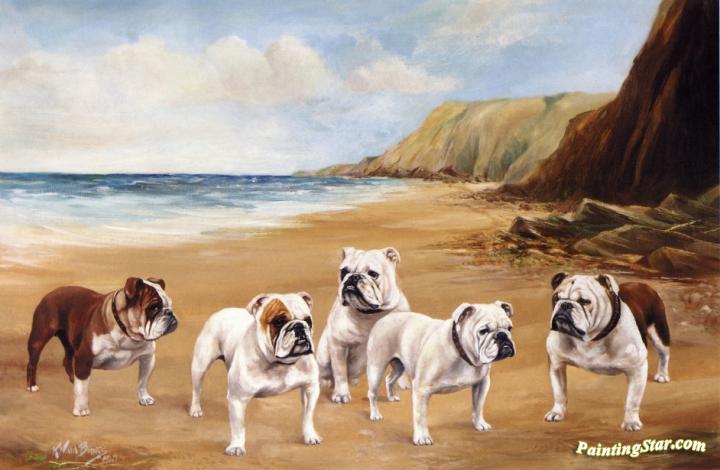 Bulldogs on the Beach, Art Painting by Reuben Ward Binks