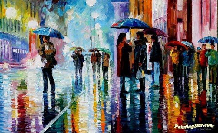 Bus Stop ,under The Rain, Art Painting by Leonid Afremov