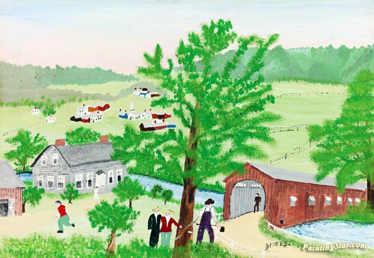Buskirk Bridge, Art Painting by Anna Mary Robertson Grandma Moses