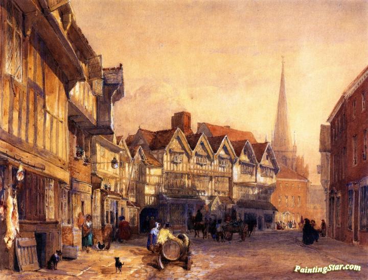 Butcher's Row, Hereford, Art Painting by David Cox