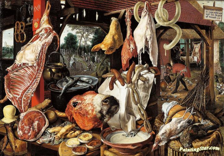 Butcher's Stall With The Flight Into Egypt, 1551, Art Painting by Pieter Aertsen