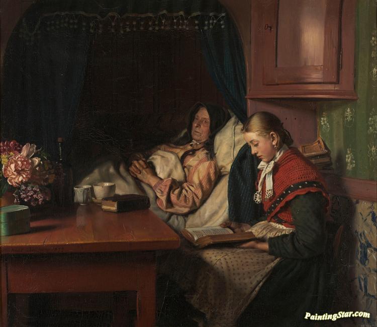 By Grandmothers sickbed(By a sickbed), Art Painting by Michael Peter Ancher