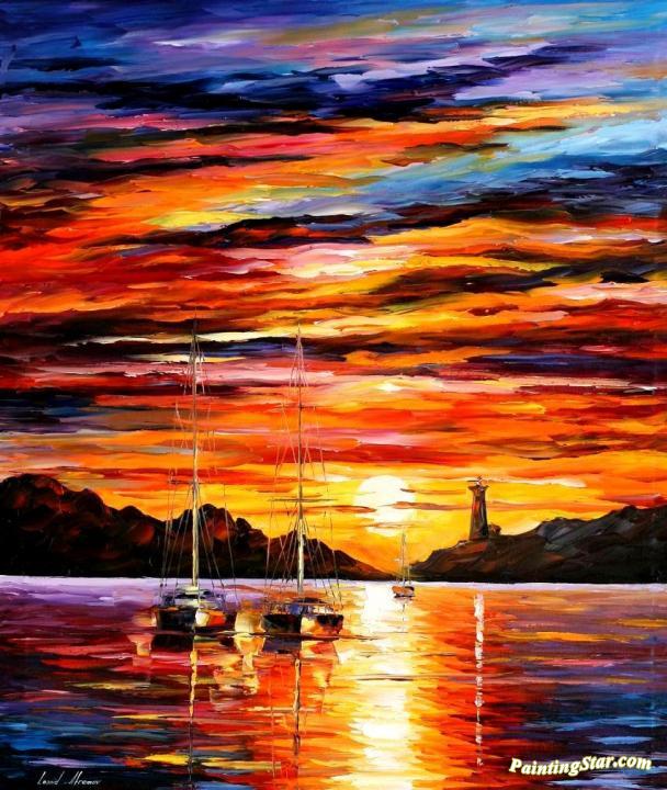 By the entrance to the harbor, Art Painting by Leonid Afremov