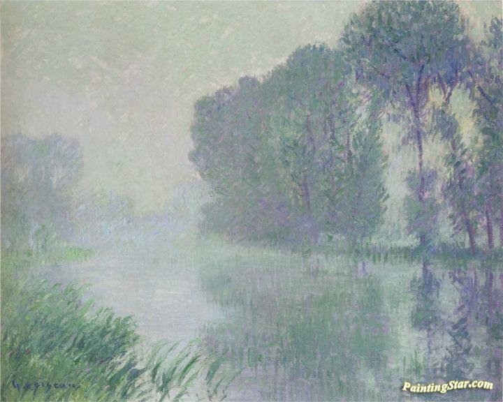 By the Eure River - Afternoon, fog effect, Art Painting by Gustave Loiseau