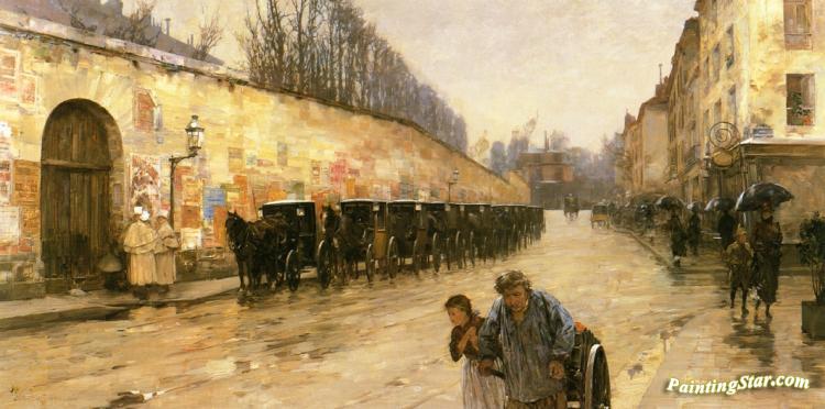 Cab Station, Rue Bonaparte, Art Painting by Frederick Childe Hassam