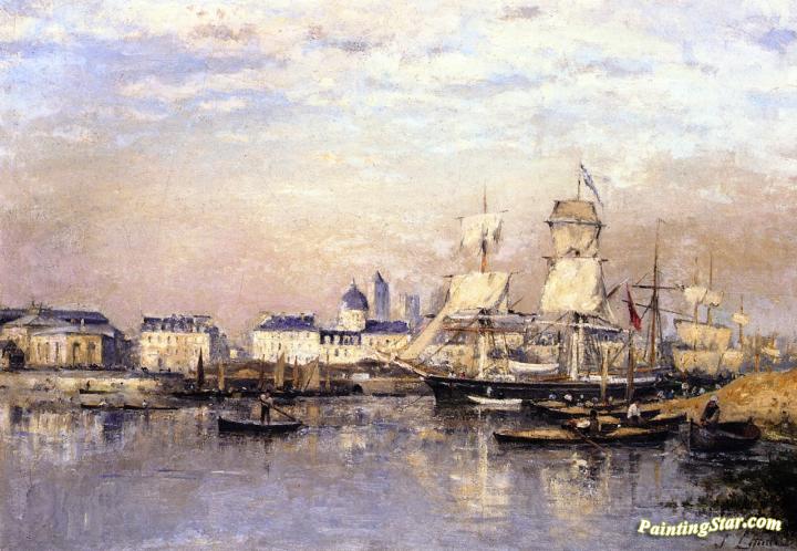 Caen, L'orne Et La Coupole Saint-jean, Depuis La Rive Droit En Face Du Grand Cours, Art Painting by Stanislas Lepine
