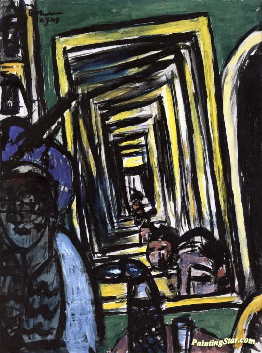 Café Interior With Mirror-play, Art Painting by Max Beckmann