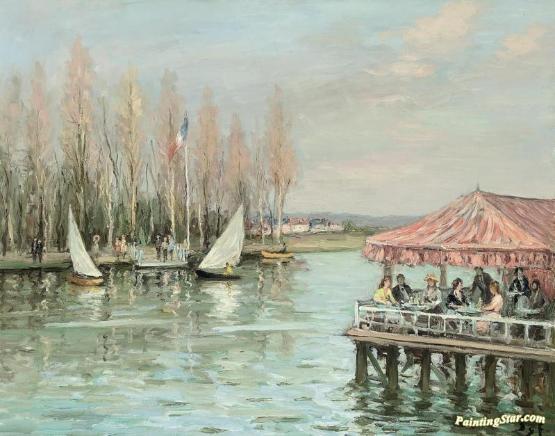 Cafe On The Bank Of The Seine, Art Painting by Marcel Dyf