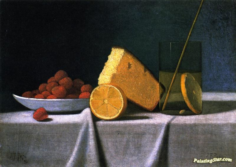 Cake, Lemon, Strawberries And Glass, Art Painting by John Frederick Peto