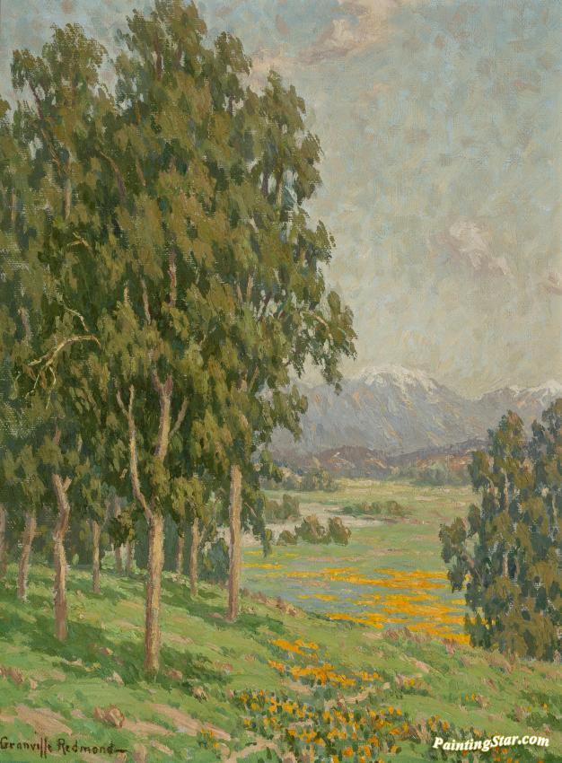 California Wildflowers And Distant Snow-capped Mountains, Art Painting by Granville Redmond