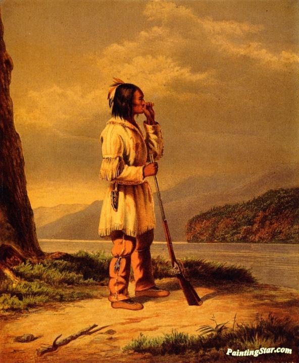 Calling Moose, "huron" Indian, Art Painting by Cornelius Krieghoff