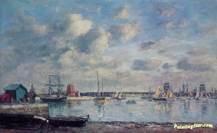 Camaret, Boats in the Harbor, Art Painting by Eugène-Louis Boudin