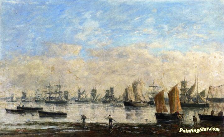 Camaret, Fishing Boats Anchored in the Harbor, Art Painting by Eugène-Louis Boudin