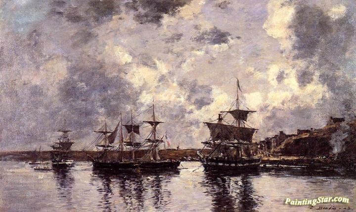 Camaret, Three Masters Anchored in the Harbor, Art Painting by Eugène-Louis Boudin