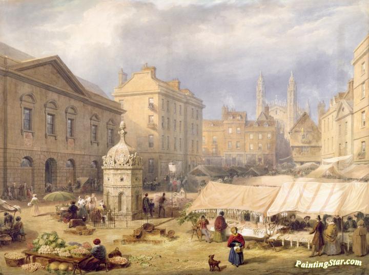 Cambridge Market Place, Art Painting by Frederick MacKenzie