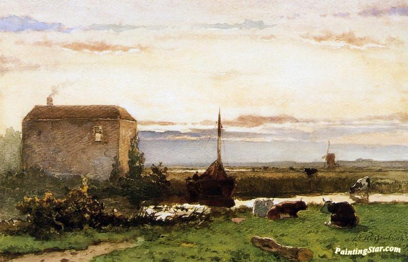 Canal At Rijswijk, Art Painting by Johan Hendrik Weissenbruch