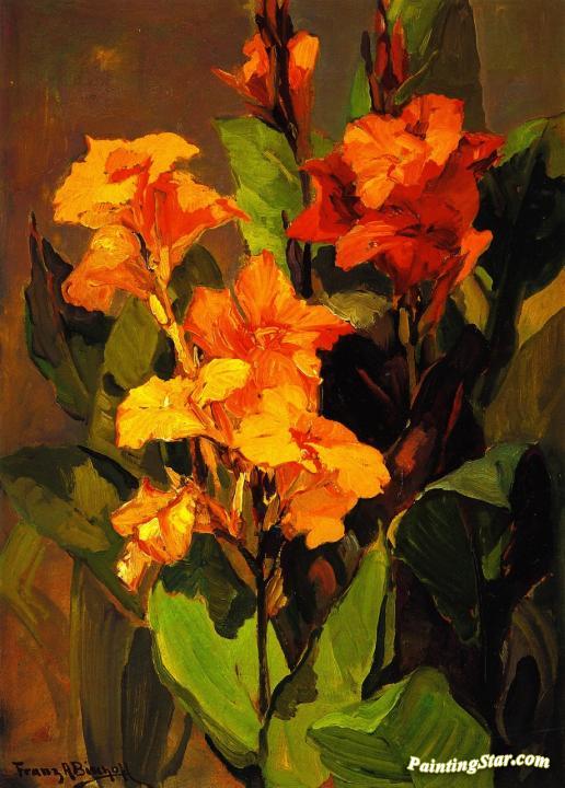 Canna Lilies, Art Painting by Franz Bischoff