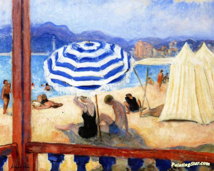 Cannes, Blue Parasol and Tents, Art Painting by Henri Lebasque