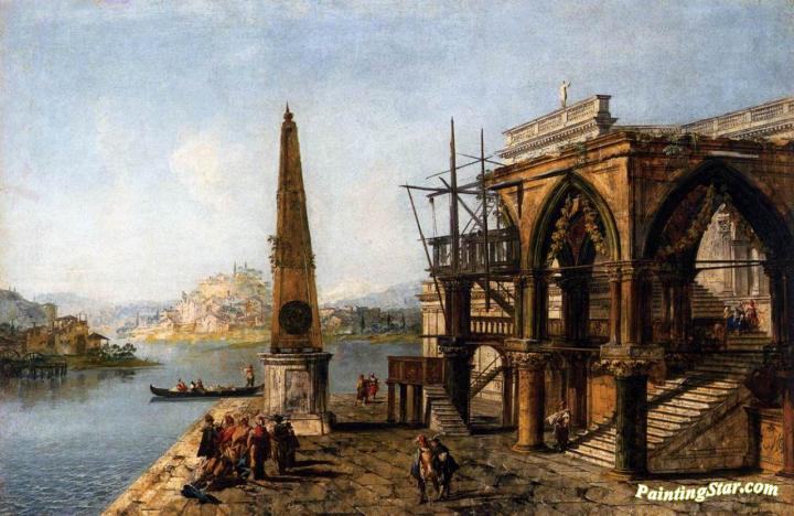 Capriccio with Gothic Building and Obelisk, Art Painting by Michele Giovanni Marieschi