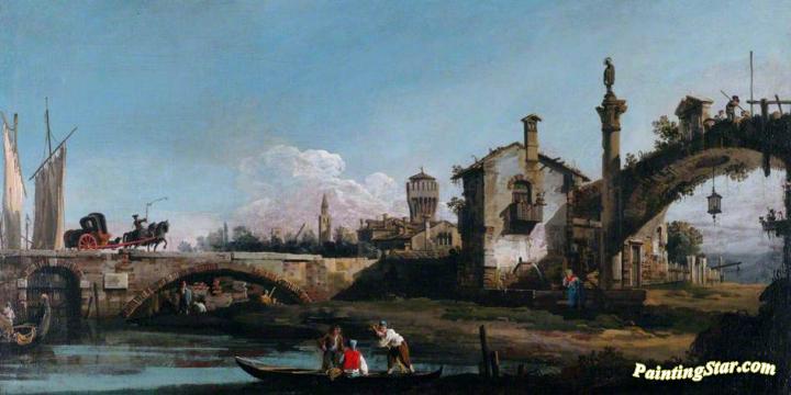 Capriccio with Two Bridges and Figures, Art Painting by Bernardo Bellotto