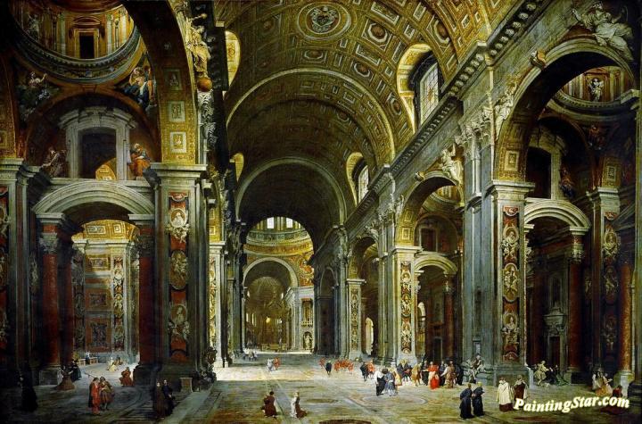 Cardinal Melchior de Polignac Visiting St. Peter's in Rome, Art Painting by Giovanni Paolo Pannini