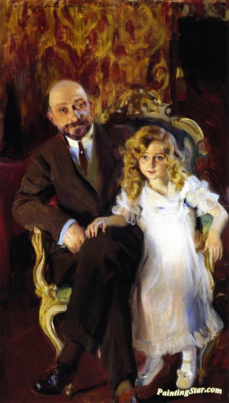 Carlos Urcola Ibarra and His Daughter, Art Painting by Joaquin Sorolla y Bastida