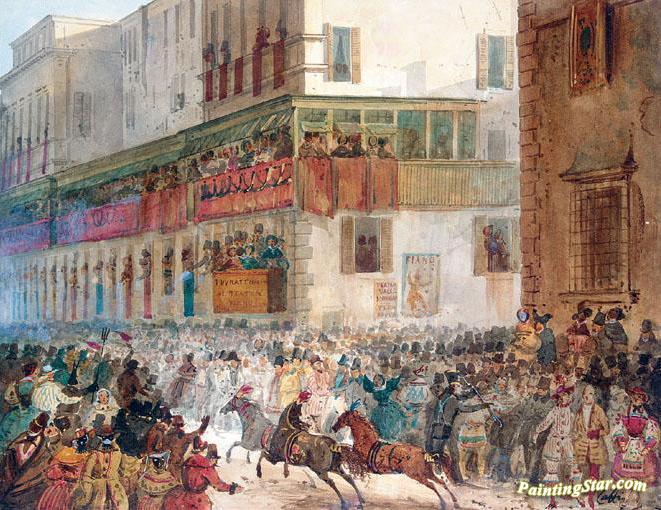 Carnival In The Via Del Campo, Rome I, Art Painting by Ippolito Caffi
