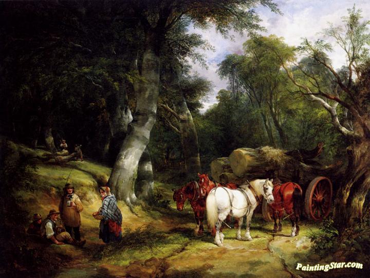 Carting Timber In The New Forest, Art Painting by William Shayer Snr