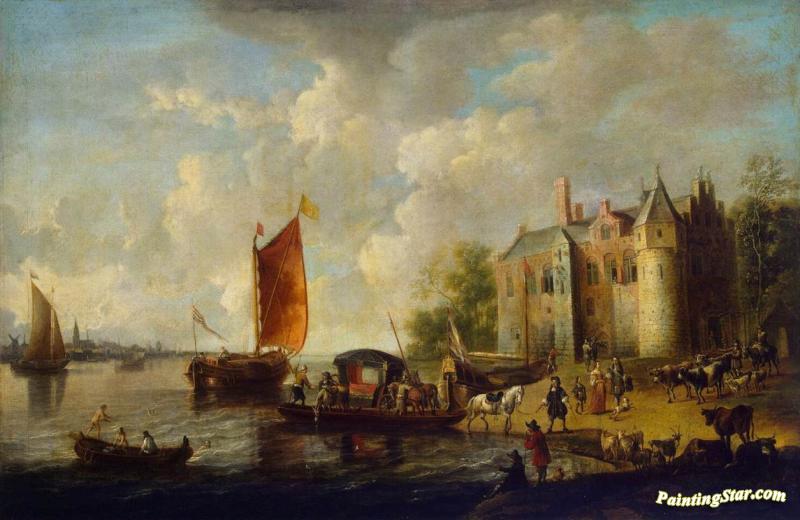 Castle On A River Bank, Art Painting by Peter van den Velde