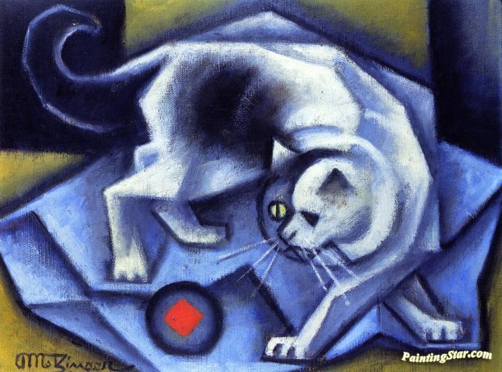 Cat Playing With A Ball, Art Painting by Jean Metzinger