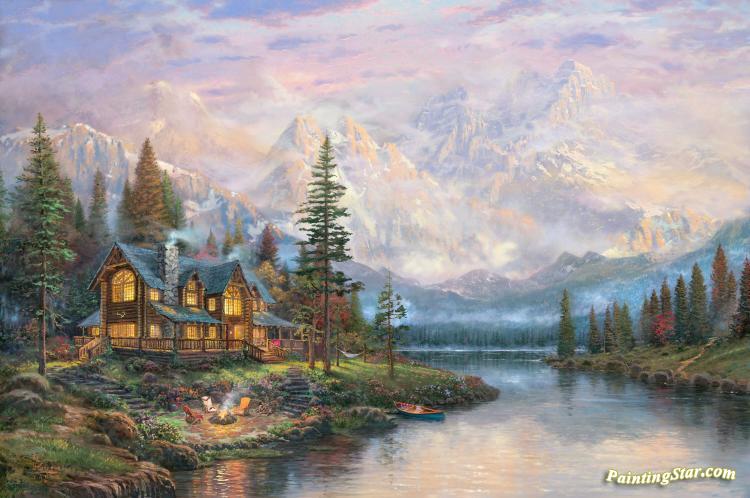 Cathedral Mountain Lodge, Art Painting by Thomas Kinkade