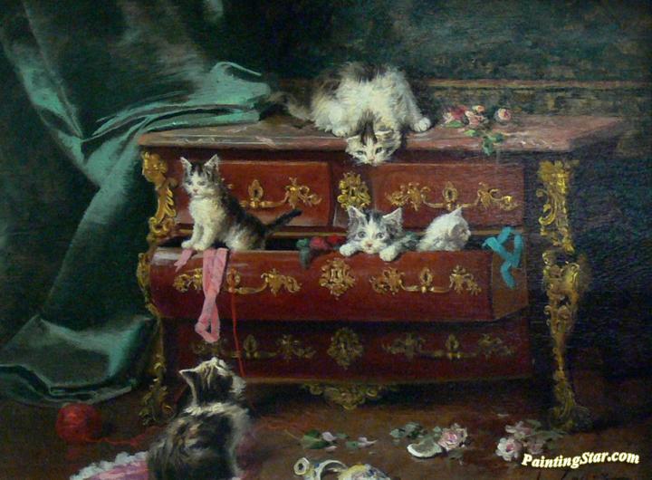 Cats In A Chest Of Drawers, Art Painting by Jules Le Roy