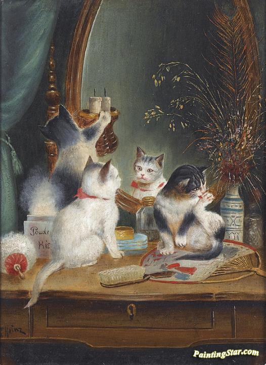 Cats in the Boudoir, Art Painting by Carl Reichert