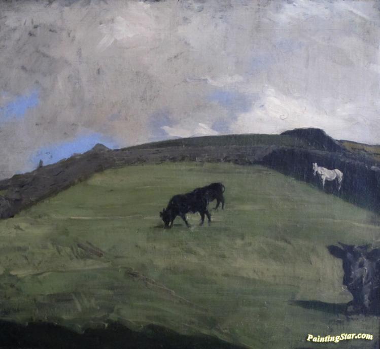 Cattle And White Horse At Pasture, Art Painting by Sir William Nicholson