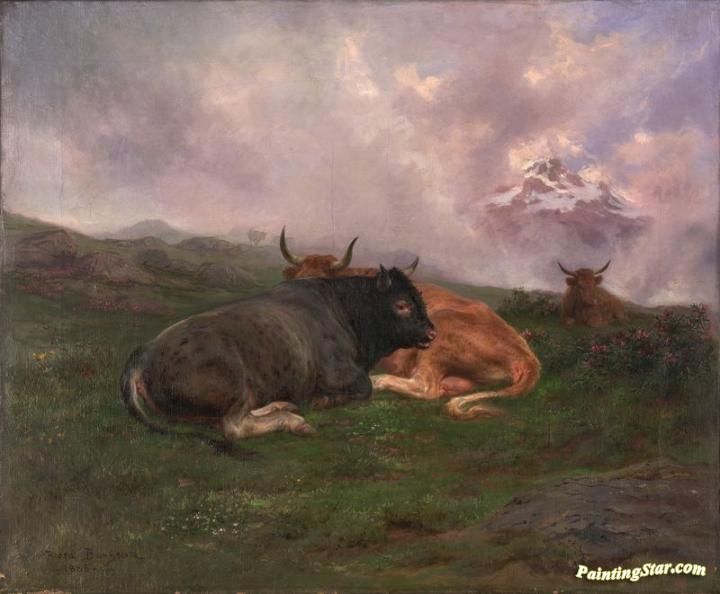 Cattle at Rest on a Hillside in the Alps, Art Painting by Rosa Bonheur