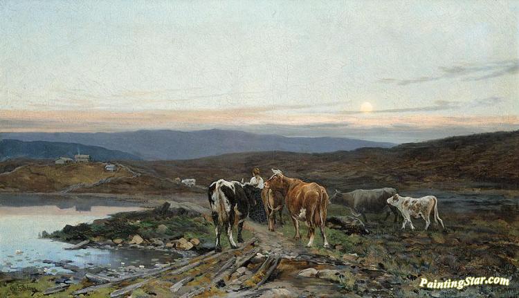 Cattle On A Country Track, Art Painting by Christian Skredsvig