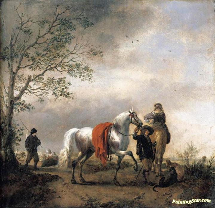 Cavalier Holding a Dappled Grey Horse, Art Painting by Philips Wouwermans