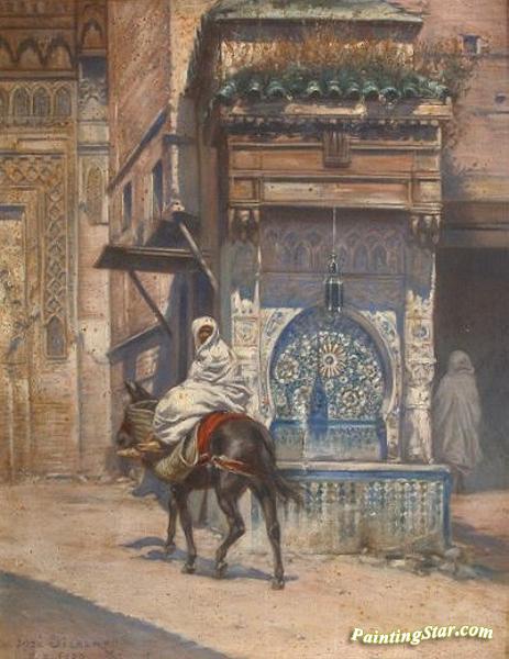 Cavalier près d'une fontaine, Art Painting by José Silbert