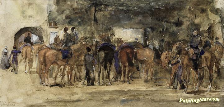 Cavalry Resting on a Square, Art Painting by George Heidrik Breitner