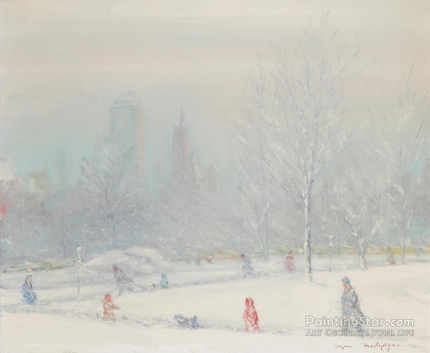 Central Park In The Snow, Art Painting by Johann Berthelsen