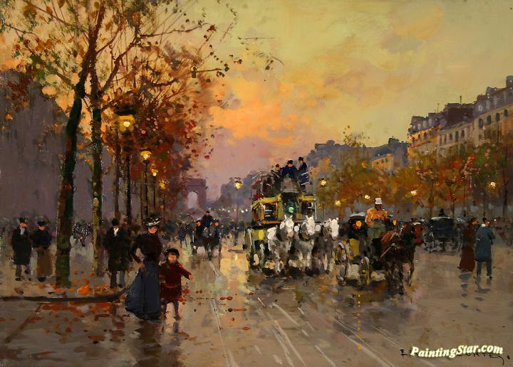 Champs-Elysees, Art Painting by Edouard Léon Cortes