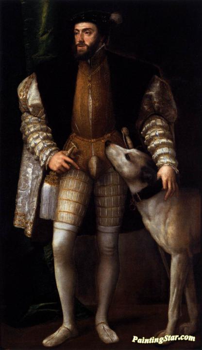 Charles V Standing With His Dog, Art Painting by Titian