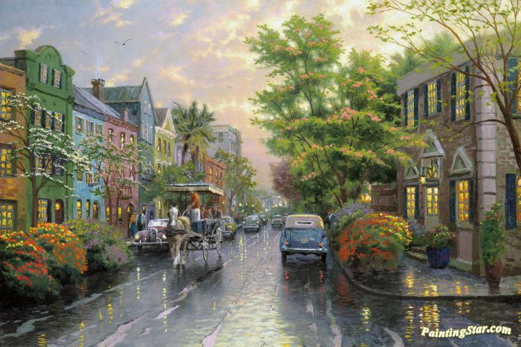 Charleston Sunset On Rainbow Row, Art Painting by Thomas Kinkade