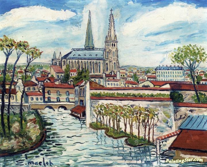 Chartres, The Cathedral And The Lower Town, Art Painting by Elisée Maclet